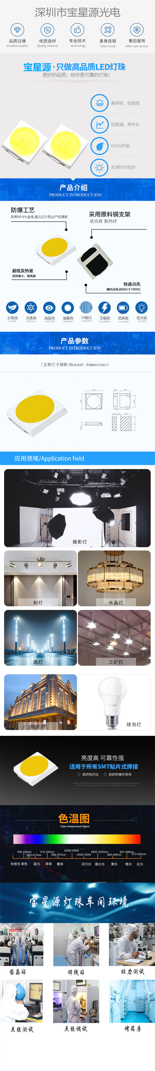 高光效,高顯指,高穩定性,低光衰 |